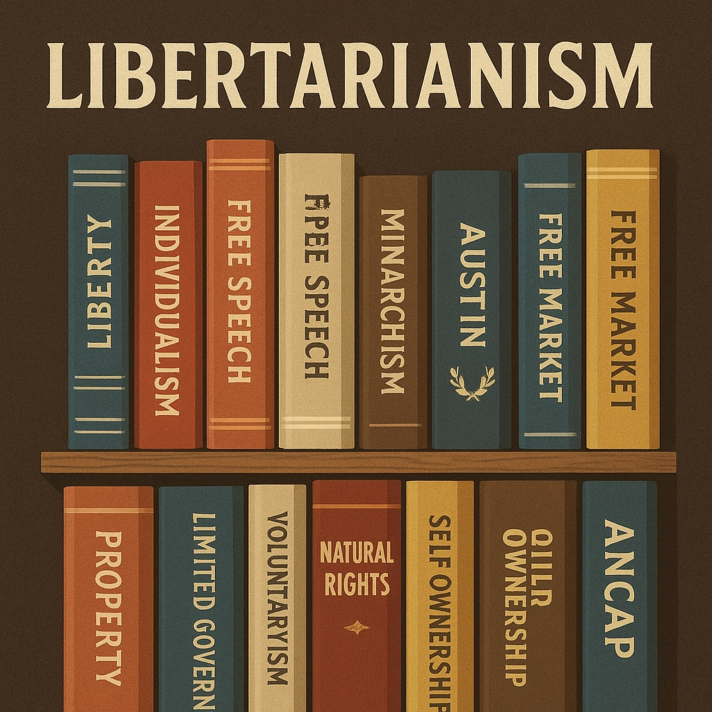 Camisas, livros e acessórios para divulgar ideias voluntaristas.